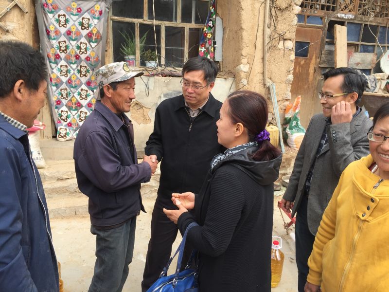4月25日,校党委副书记薛智、大奶妹做爱 党委书记秦丽、党委副书记杨湖、各支部书记一行赴五寨县东秀庄乡吴家沟村进行“一对一”精准扶贫。