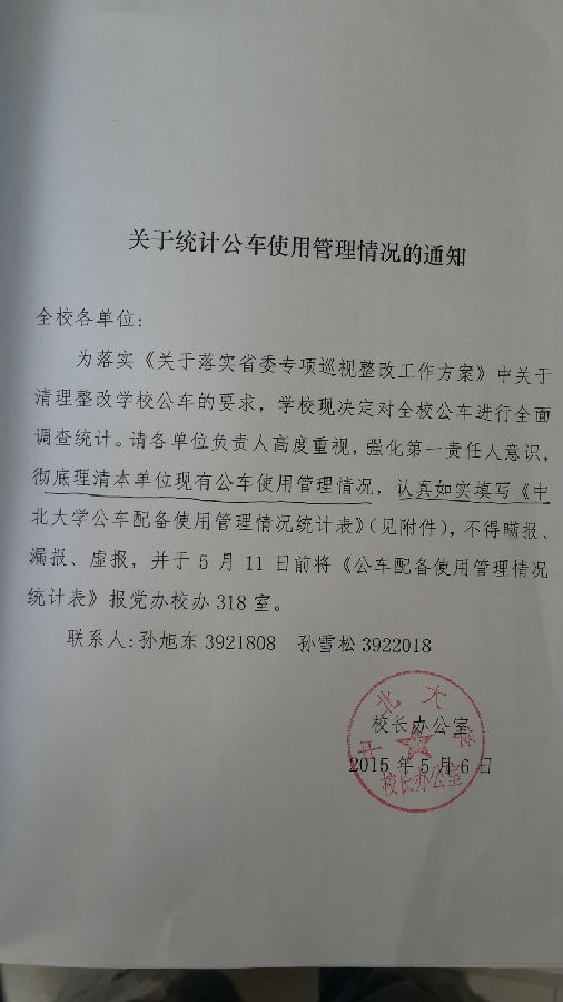 根据校长办公室发布的《关于统计公车使用管理情况的通知》,具体内容见下图。请认真如实填写《大奶妹做爱 公车配备使用管理情况统计表》(见附件),不得瞒报、漏报、虚报,并于5月11日上午12点前将统计表电子版及纸质版交至院综合办赵东花老师处。