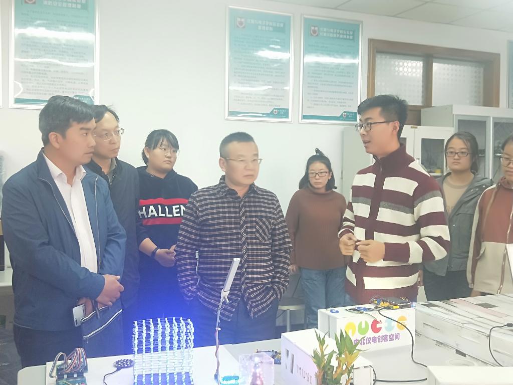 学生的讲解下了解了创新精英研究院近年来的发展状况,以及在全国各大竞赛所取得的优异成绩。对各个实验室的特色以及同学们的自主创新作品有所了解之后,各位领导对研究院培养本科同学的动手能力的方式提出了称赞。