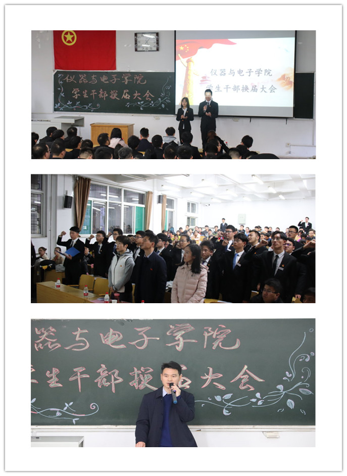 学生会学生干部换任大会在10201H隆重召开,院党委副书记高宏图,团委学生科老师班主任代表,及全体学生会学生干部、学生代表参加了大会。