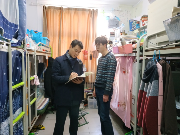 同时在检查过程中,老师们与同学们进行了深入的交流,引导同学们要在平常的生活中,注意防寒保暖,注意财物安全、用水用电安全、人身安全,加强内务清洁管理,保持宿舍环境卫生,牢固树立安全意识、节约意识、环保意识,自觉遵守校纪校规,共同创建积极向上、健康和谐的阳光宿舍。