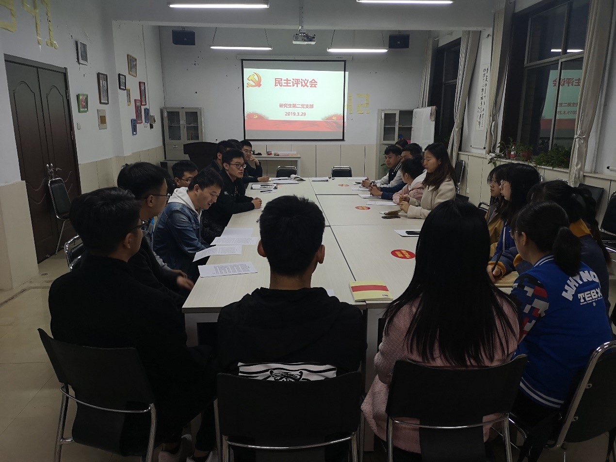 研究生第二党支部在瑞学楼302召开组织生活会和民主评议党员活动,本次会议采取个人自评、党员互评的方法开展批评与自我批评。会议由支部书记李晨鑫同志主持,全体支部成员参加了会议。