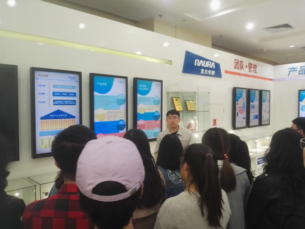 4月12日同学们来到北方华创科技集团股份有限公司,该公司是目前国内集成电路高端工艺装备的龙头企业,致力于成为国际领先的高端电子工艺装备和精密电子元器件两大基础电子产品服务商。拥有半导体装备、真空装备、新能源锂电装备及精密元器件四个事业群。在公司,同学们了解了半导体行业的发展前沿以及国内半导体行业的发展现状和瓶颈,认识了许多高端精密设备。