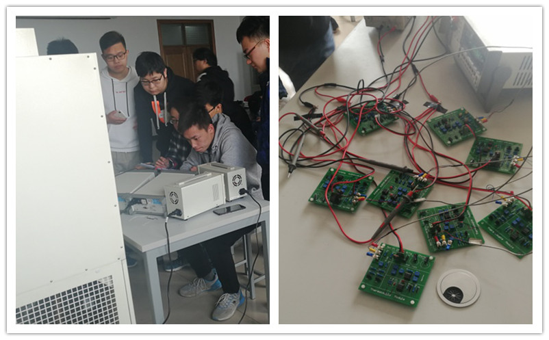 经过张志杰老师和高晋阳老师的指导,以及在三名研究生的配合下,温度传感器实践模块进入动手实践环节。目前已经完成了温度传感器电路设计、电路仿真、PCB学习、电路焊接、电路放大滤波测试、数据记录与幅频曲线绘制、静态标定和动态标定等相关工作。通过该模块的实践活动,测控技术与仪器专业16级本科学生以2-4人每个课题小组的形式,完成温度传感器的设计、制作、测试工作,通过方案设计与答辩、温度传感器电路焊接与调试、温度传感器的标定等多个环节,对学生在创新实践能力进行了全面的训练与提升。学生们能够认真听讲,详细记录,学习氛围浓厚,通过目前的学习,同学们扩宽了思路、开阔了视野、强化了学习与研究意识。