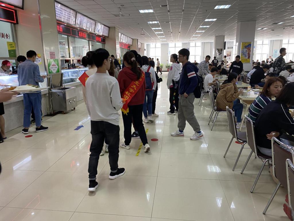 每天中午11:20-13:00、下午17:20-19:00,每班次20名志愿者们都会按时到龙山、田园餐厅门口进行集合。清点人数后,我们便按人数分组并分配职责任务。其中会有同学负责在食堂负责人处录制“勤俭节约,少食多餐”等倡导大家节约粮食的音频,其他同学则会分为两组分别负责餐厅一楼、二楼的光盘监督工作,提醒同学们坚决制止餐饮浪费行为,倡导同学们厉行节约,反对铺张浪费,引导同学们珍惜粮食、吃光盘子中的食物,积极践行“光盘行动”的倡导。
