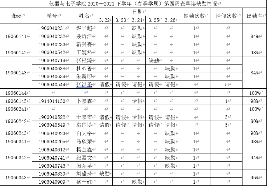 3、本周被误报者请找各班主任反馈给学风建设部相关人员更正(请保留一周)