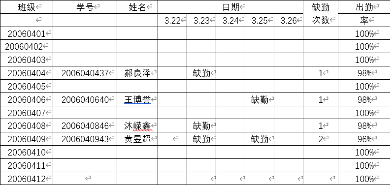 3、本周被误报者请找各班主任反馈给学风建设部相关人员更正(请保留一周)