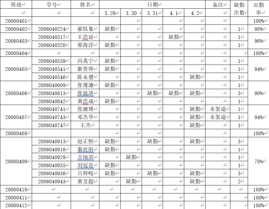 3、本周被误报者请找各班主任反馈给学风建设部相关人员更正(请保留一周)