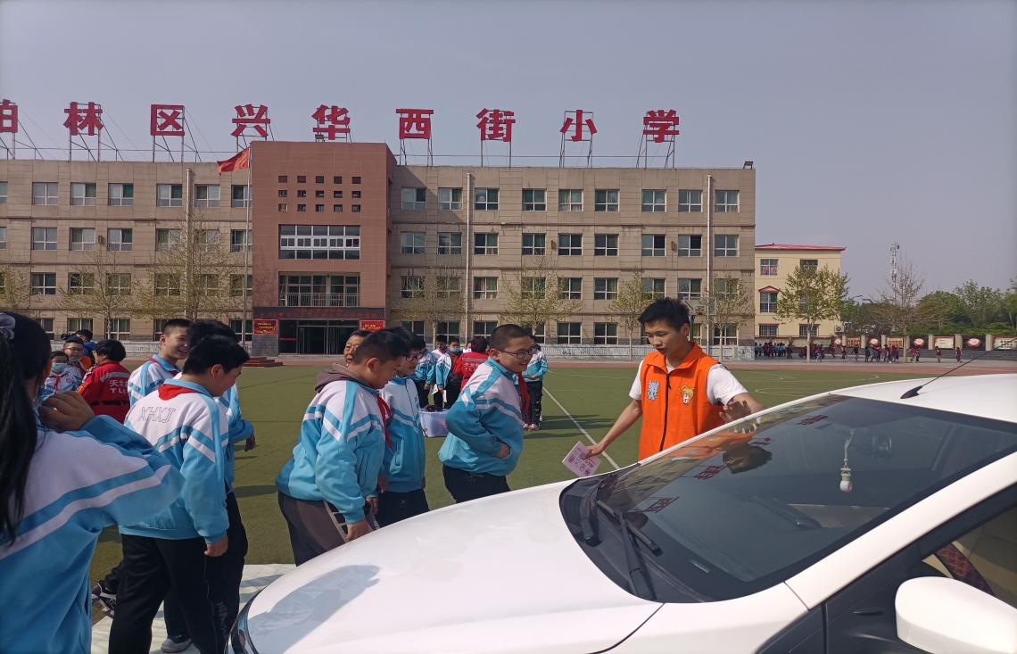 活动期间,志愿者们顶着炎热的烈日,将活动需要的海报、桌子等物品进行了提前的布置。志愿者主动积极参与,通过海报展示、志愿者讲解、传单发放,拍照记录等方式向孩子们宣传、普及交通安全活动及相关志愿知识。大家各司其职,与孩子们和谐欢乐的相处。