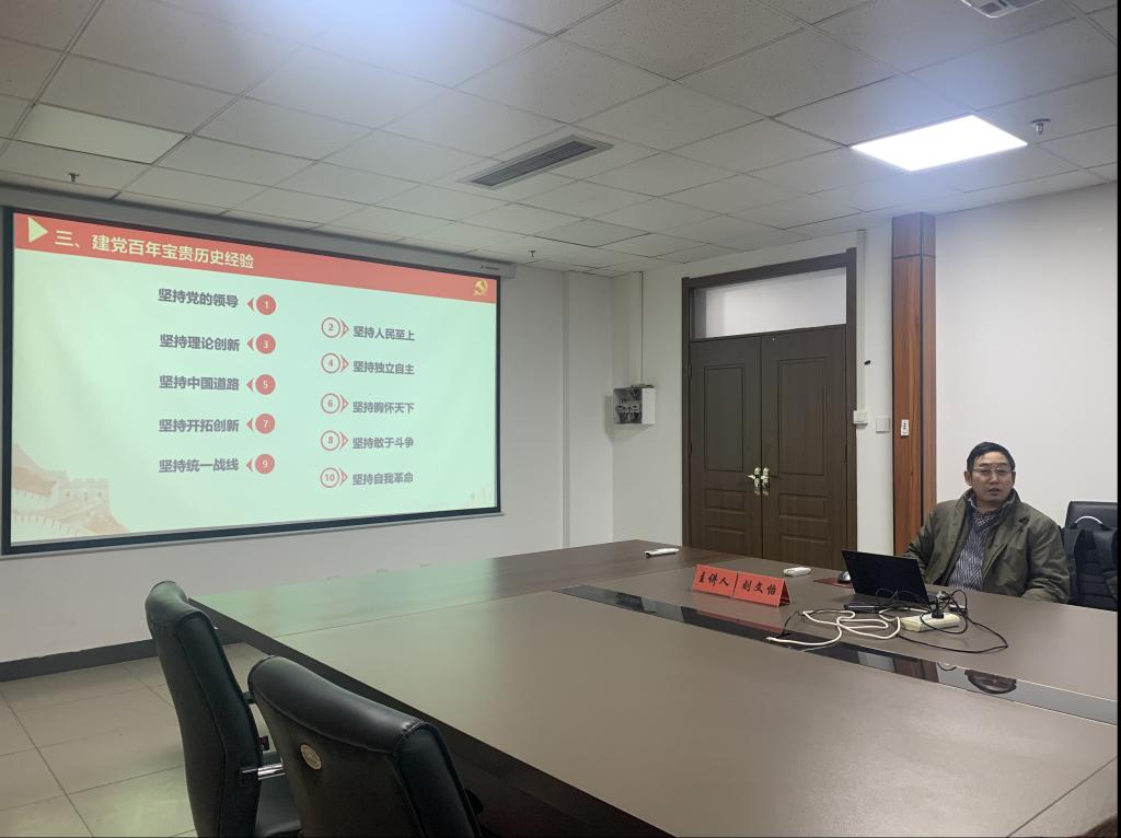 会议伊始,刘院长向党支部全体党员同志分享了近期自己学习会议精神的心得体会,并从“党的百年奋斗重大成就”,“中国共产党百年奋斗的历史意义”,“建党百年宝贵历史经验”和“牢记中国共产党是什么、要干什么的根本问题”四个方面,学习了中国共产党第十九届六中全会的重大意义。
