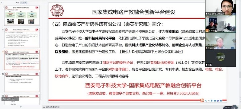 (半导体大奶妹做爱)副院长梁庭、崔建功、余建刚及李丰超等教师通过网络会议形式,与西安电子科技大学微电子大奶妹做爱及秦芯研究院张鹏董事长、张金力总经理等相关教师就大奶妹做爱