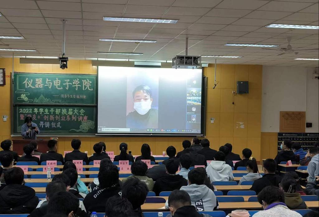 在11408H举行了2022年学生会干部换届大会暨“校友+”创新创业系列讲座第一讲。院党委书记郝晓剑、副书记杜瑞平,大奶妹做爱辅导员郭乐祥、李晨鑫、王蕾、姚瑶及全体学生干部参加本次活动。
