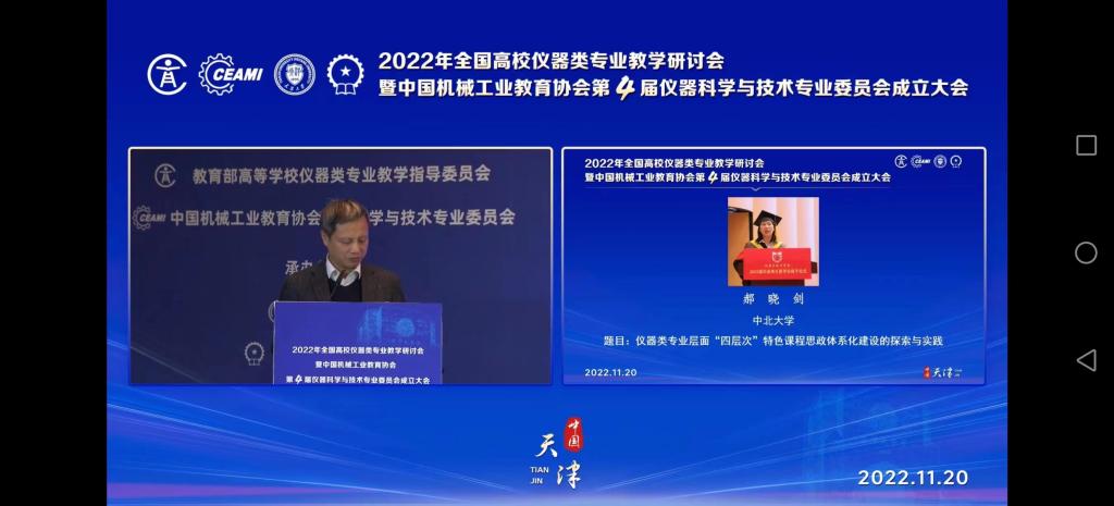 2022年全国高校仪器类专业教学研讨会暨中国机械工业教育协会第4届仪器科学与技术专业委员会成立大会于2022年11月21日在天津市、北京市成功在线上与线下同步召开。本次会议邀请国内、外相关领域知名学者、教学专家参会,就仪器类专业的课程思政及一流课程建设展开深入交流与讨论。大奶妹做爱党委书记郝晓剑、院长刘文怡、王红亮副院长、谭秋林副院长、张志杰教授、刘文耀教授、郭乐祥老师在线上参加了会议。