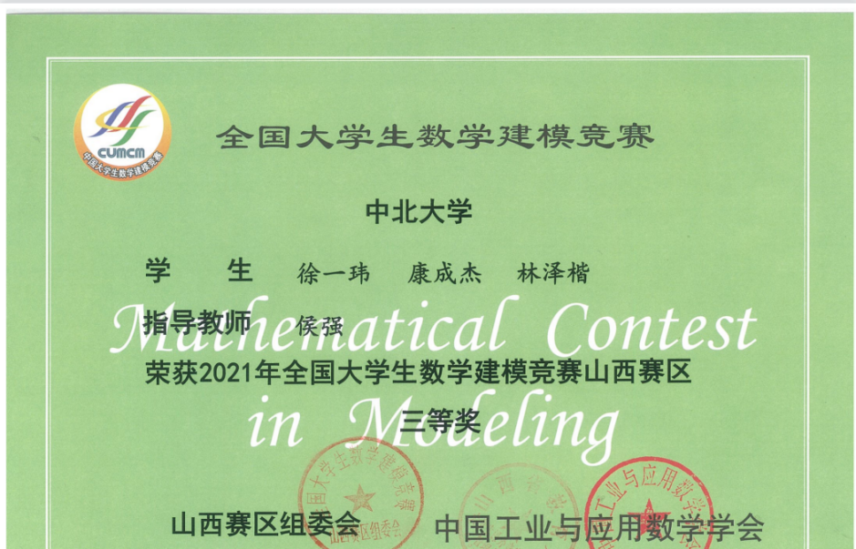 2021年获全国大学生数学建模竞赛省级三等奖