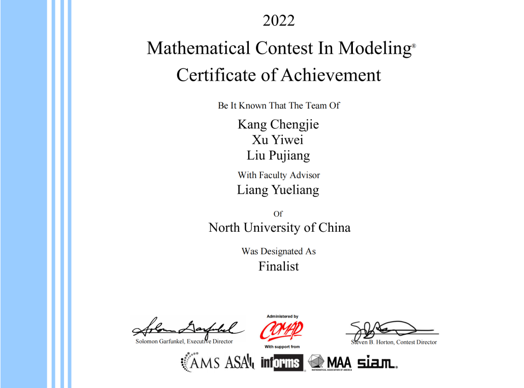 2022年获美国大学生数学建模比赛f奖