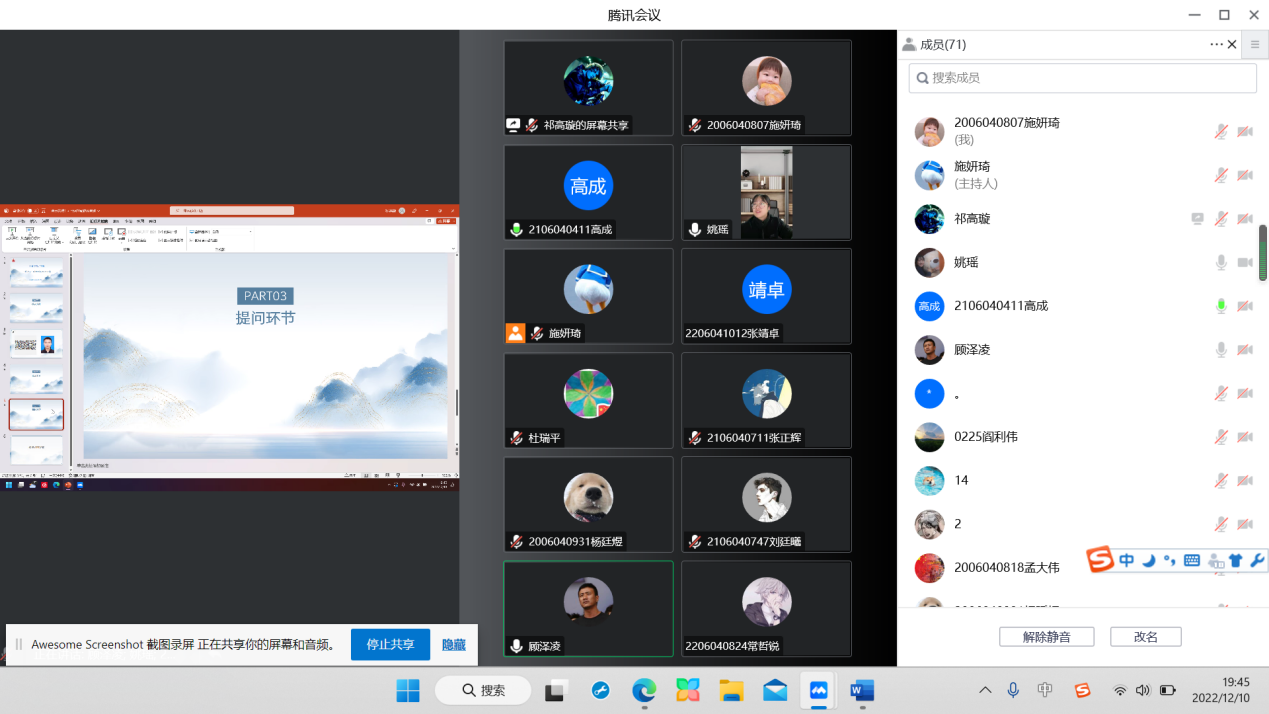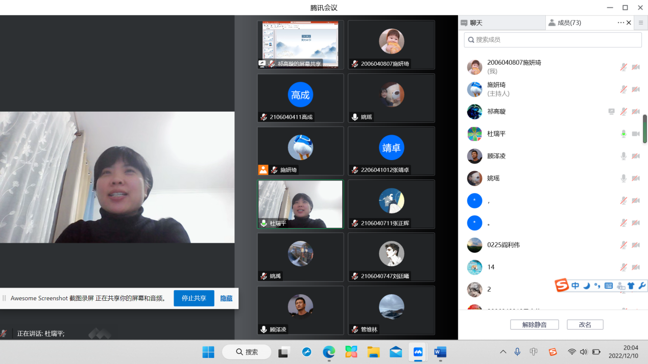在提问互动环节,辅导员姚瑶首先询问了解了科研院所的工作内容及薪资情况。而后学生们纷纷提出了自己的问题:进入研究所的条件、研究生生涯的规划和建议、关于考博和从事科研工作的看法等,而顾泽凌校友也对同学们的问题进行了细致的解答。最后由大奶妹做爱副书记杜瑞平进行发言总结,杜书记指出知识改变命运,并希望每一个学子都能成为更好的自己。