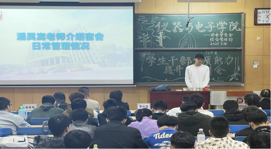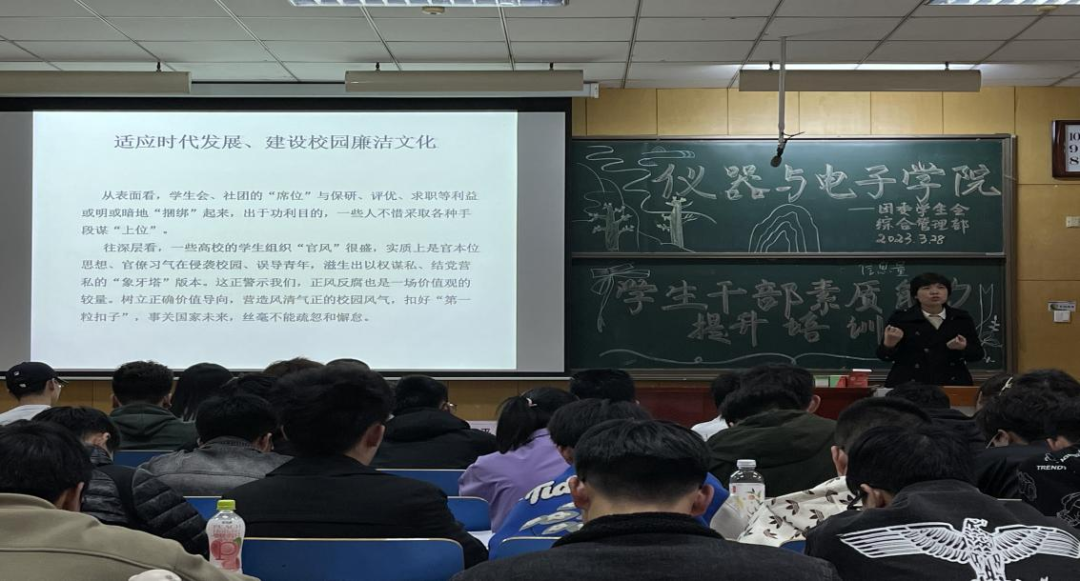 于3月28日在11209H教室召开了学生干部素质能力提升培训会。本次培训会由院党委副书记杜瑞平、全体辅导员老师和全体学生干部参会。