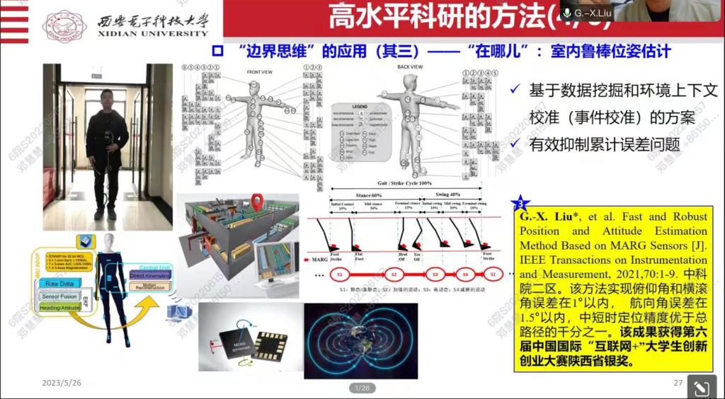 刘公绪副教授还以他发表的文章《无线信号交汇定位的奇异解问题表征与解决》为例,介绍了对高水平学术研究的思考。朱中梁院士、王鼎教授等领域知名专家评价其对无线信号交会定位奇异解问题进行了独到新颖的研究,发现了用于表征奇异解的8条几何拓扑约束关系,提出了参数微调法和空时自调节法解决奇异解问题,该工作对于几何定位、基站布设、奇异解表征、鲁棒定位等具有指导意义。