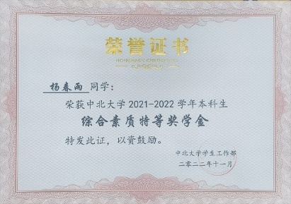 三好学生,优秀共青团员等称号,国家一等奖三项以及其他奖项若干。