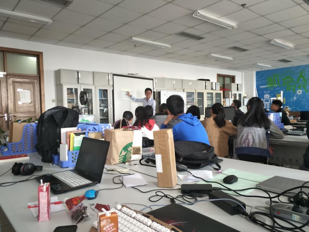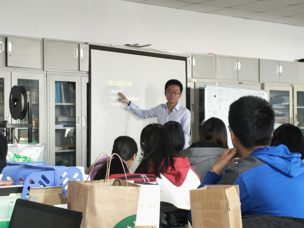 2018年3月25日上午,机器人实验室(主楼1308)进行了新学期第一期日常培训。本次培训由实验室创始人,原研究院院长郑杨柳学长组织进行,共有来自实验室成员,机器人爱好者协会等30余人(大二大一)参与讨论和学习。郑杨柳学长从计算机诞生出发,结合自身学习经验,循序渐进的展开了门电路和单片机的知识讲解,为大家指明了学习的方向。其中郑杨柳学长提出的以“发现问题与疑惑”来促进学习和探索的观点,为实验室学习小组提供了新思路和体会到从另一高度认识所学知识的必要性。中午时分,在大家的积极讨论下实验室完成了此次培训。