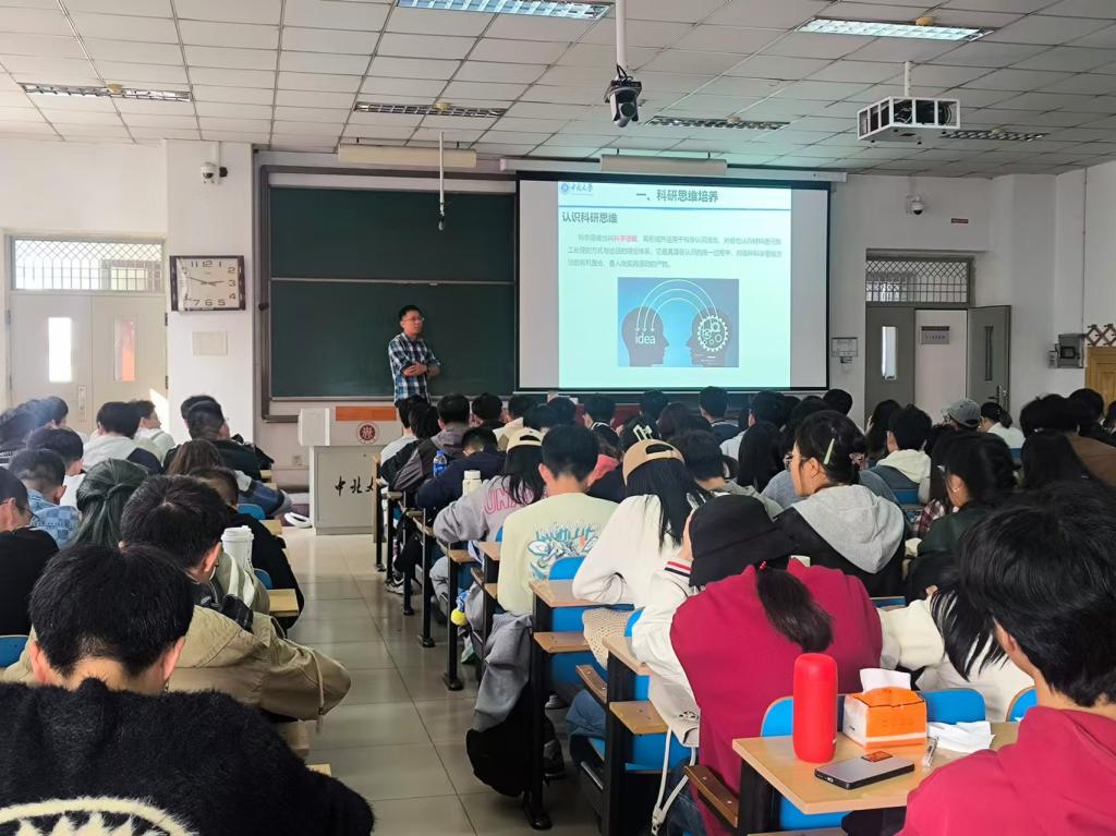 翟聪老师首先与研究生同学们探讨了科研思维的重要性,引导研究生们真正认识科研,培养批判性思维、逻辑思维和创造性思维,为科研之路打下坚实的思维基础。后介绍了科研工具的使用,旨在提升研究生在科研实践中的效率与准确性。又围绕如何高效阅读文献、筛选关键信息以及选择适合的研究方法,分享了实用的技巧与策略,帮助研究生更好地掌握科研前沿动态,为科研工作提供理论支撑。翟老师详细介绍了论文结构布局、语言表达、图表制作及投稿策略。通过实例分析,让研究生了解论文发表的流程与技巧,为学术成果的发表打下坚实基础。翟老师强调了学术诚信的重要性,详细解读了学术引用的规范与要求。他认为同时要关注自身心理健康,提供了应对科研压力、保持积极心态的方法与建议。翟老师结合自身经历,通过分享自己在科研道路上的成功与挑战,鼓励研究生在科研道路上既要追求学术成就,也要注重个人全面发展。
