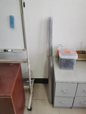 隐患1:电源控制箱附近有遮挡物。 隐患2:实验室内纸箱杂物摆放混乱。 |