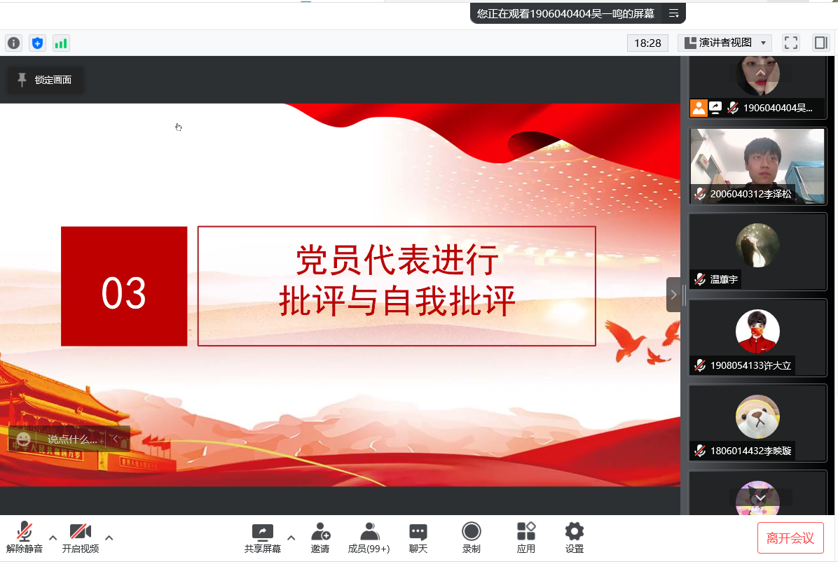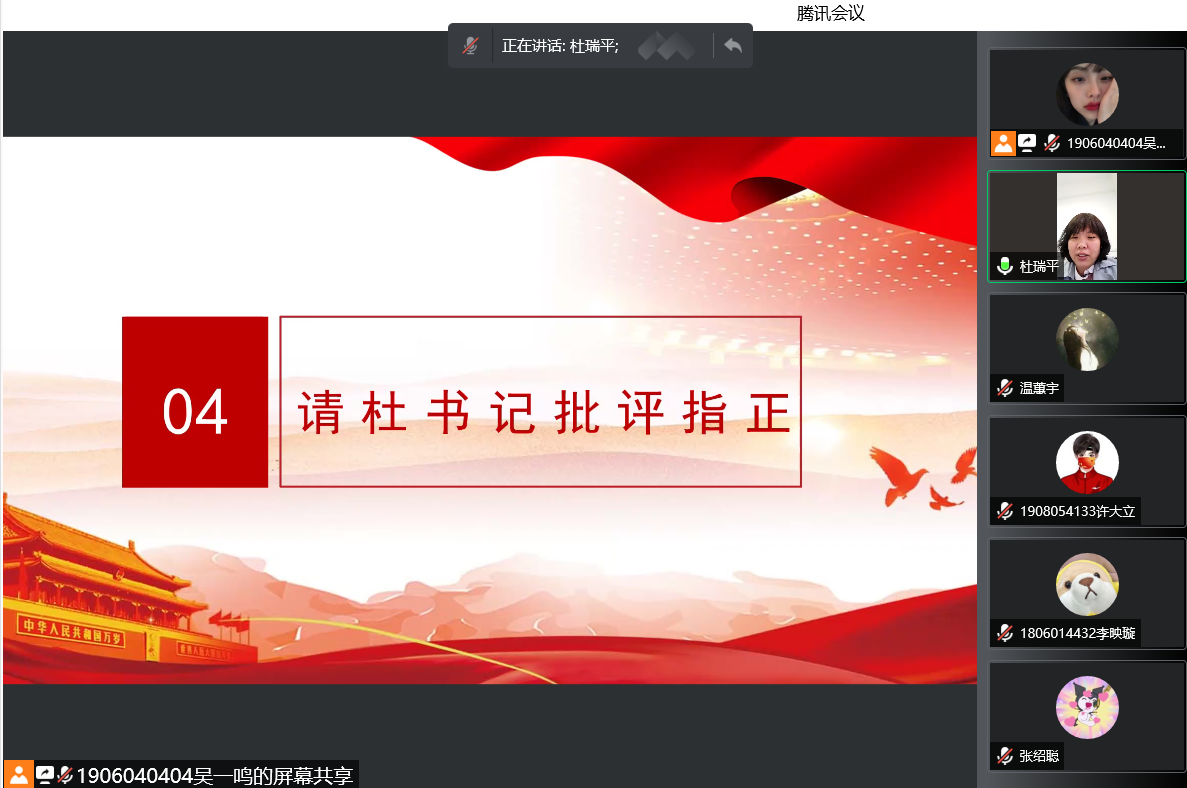 2022年3月15日,仪器与测控党支部全体正式党员、预备党员、重点发展对象和入党积极分子代表于线上腾讯会议在支部副书记贺宇昕的主持下开展了组织生活会和民主评议党员工作会议。在会议上,党员代表进行批评与自我批评,更加认真的做一名共产党员