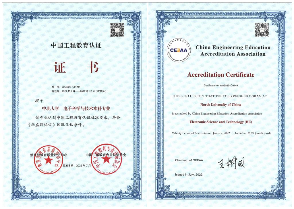 通过工程教育认证专业:电子科学与技术