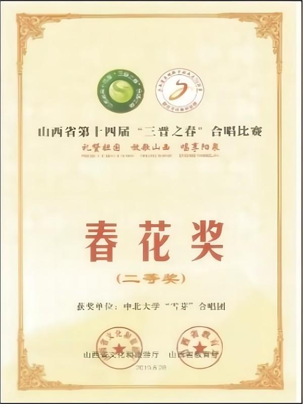 2019年雪芽合唱团获山西省第十四届“三晋之春”合唱比赛“春花奖”(省级二等奖)